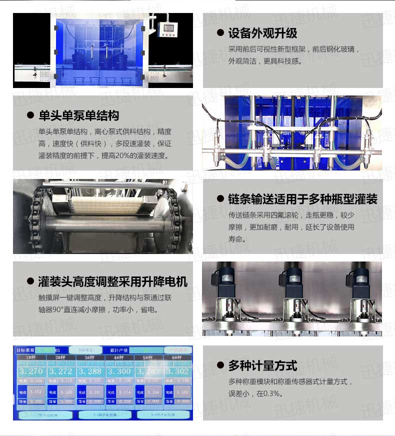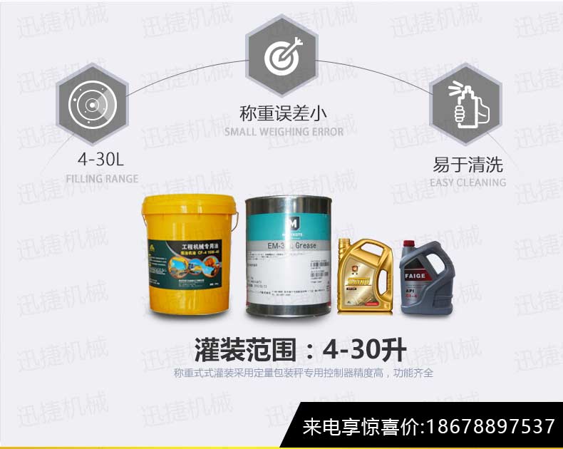 機(jī)油灌裝機(jī)適用于對(duì)4kg-25kg汽車用品類產(chǎn)品:潤(rùn)滑油、防凍液、車用尿素等液體灌裝。自動(dòng)完成計(jì)數(shù)進(jìn)瓶、計(jì)重量灌裝、輸送出瓶等一系列操作。 特別適用于潤(rùn)滑油、水劑、食用油的定量灌裝,是食品,醫(yī)藥,化妝品以及精細(xì)化工等行業(yè)的理想灌裝機(jī)。本機(jī)采用可編程控制器(PLC)、高速工控組態(tài)軟件進(jìn)行實(shí)時(shí)監(jiān)控的控制,使用調(diào)節(jié)方便。整機(jī)按GMP標(biāo)準(zhǔn)要求制作,各管路連接采用快裝方式,拆卸清洗方便,與物料接觸部位及外露部位均采用不銹鋼制造。整機(jī)安全、環(huán)保、安全、美觀、能適應(yīng)各種不同環(huán)境工作。