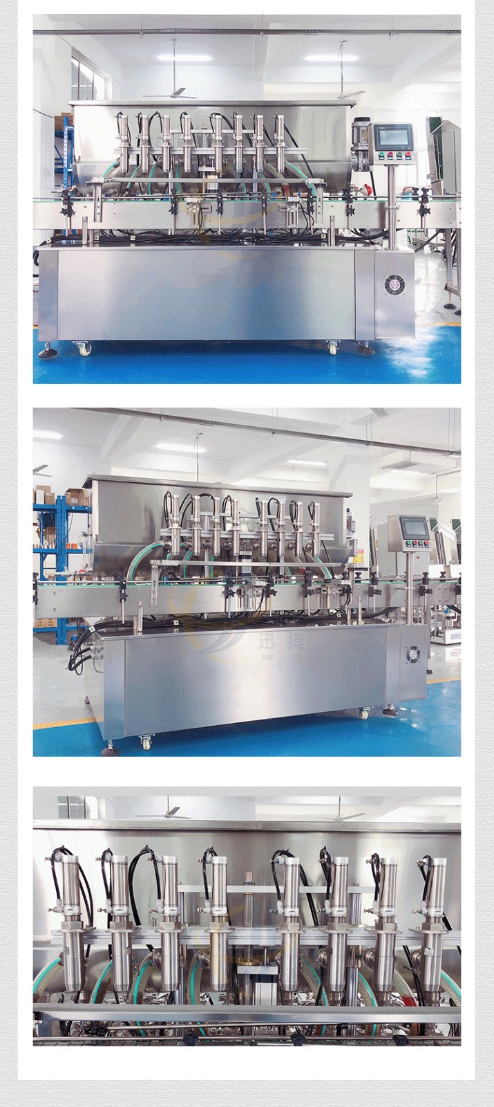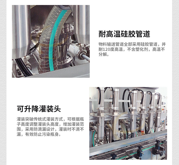 全自動八頭醬料灌裝機采用活塞式灌裝原理,適用于調味品中帶顆粒并且濃度較大的辣椒醬、豆瓣醬、花生醬、香菇醬、果醬