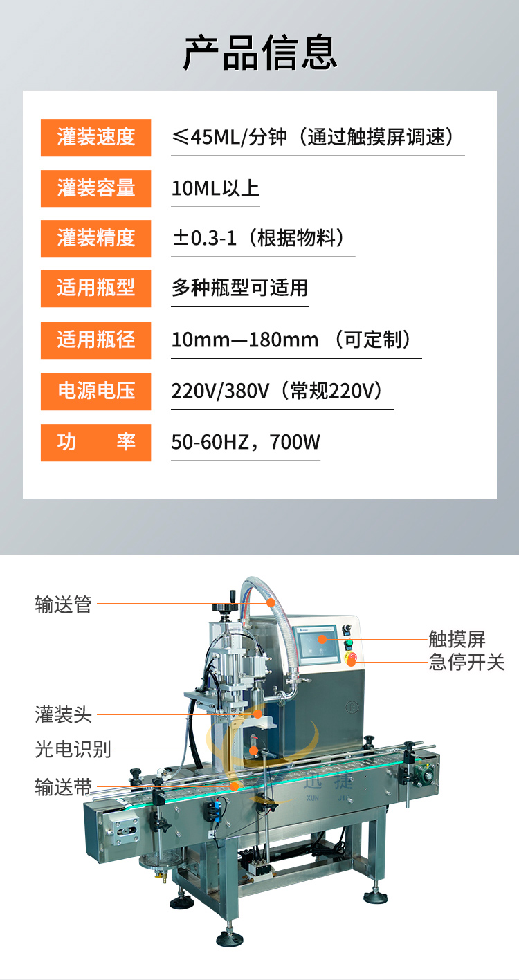 磁力泵全自動灌裝機采用螺旋式定量原理,由觸摸屏操作顯示,設(shè)計新穎、外型美觀,適用廣泛、操作簡單、灌裝準(zhǔn)確、維護(hù)方便等特點。