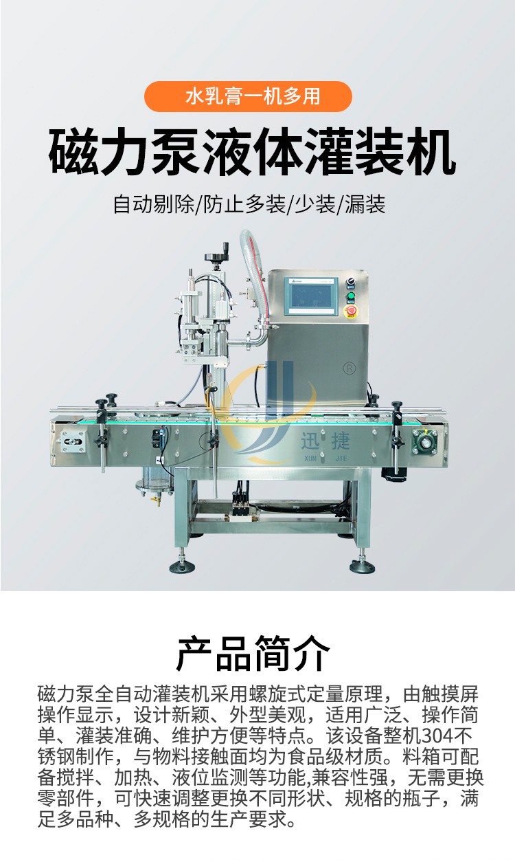 磁力泵全自動灌裝機采用螺旋式定量原理,由觸摸屏操作顯示,設(shè)計新穎、外型美觀,適用廣泛、操作簡