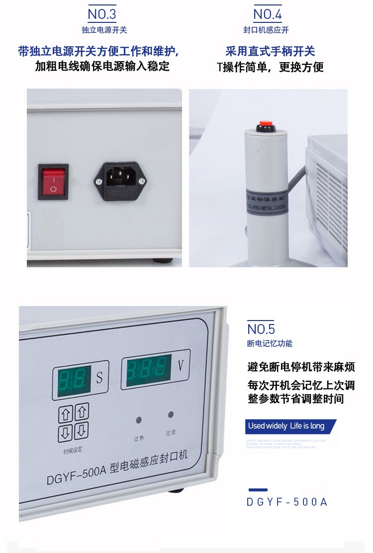該封口機為手持式鋁箔封口機,是一種便攜式電磁感應加熱封口設備,專為制藥、化工、農(nóng)藥、食品、化妝品、輕工行業(yè)對容器進行鋁箔嚴密封口